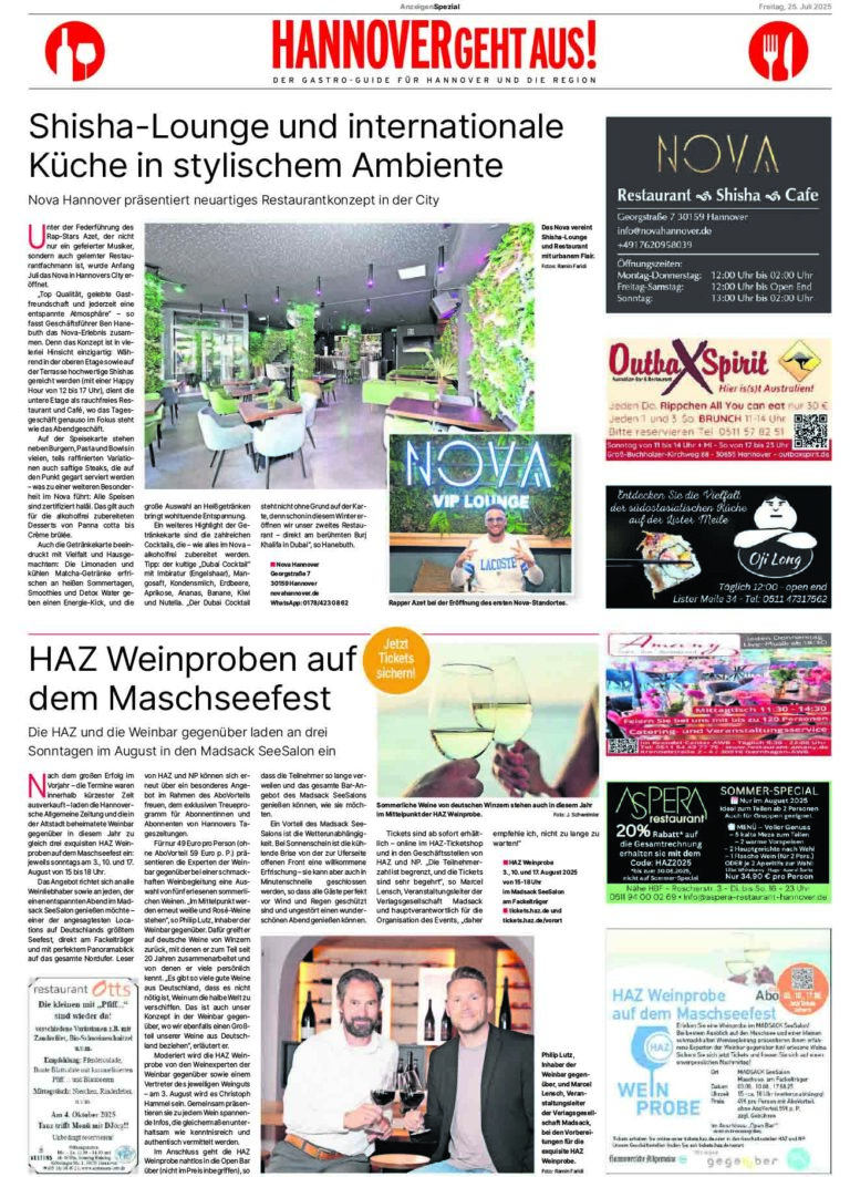 Monatlich bieten die Sonderseiten unseren Leserinnen und Lesern Inspiration und Orientierung für die vielfältige hannoversche Gastronomieszene.