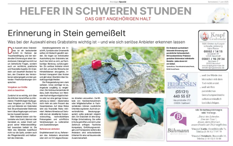 Gewerbliche Nachrufe werden zusätzlich im Online-Trauerportal veröffentlicht. Online-Zuschlag: 14,95 €.