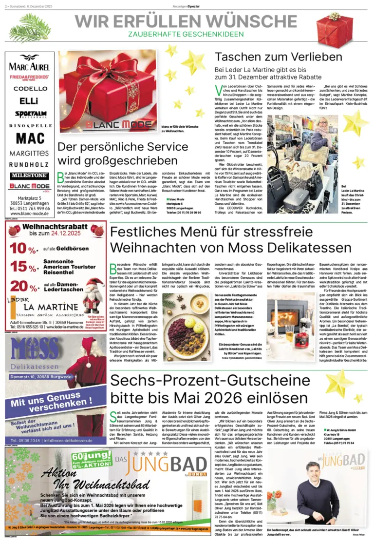 Mit diesem Sonderthema ein redaktionelles Umfeld, das maßgeschneidert ist für die Vermarktung Ihrer Angebote und Leistungen. Von Burgwedel bis Sehnde – hier erreichen Sie neue Kunden.